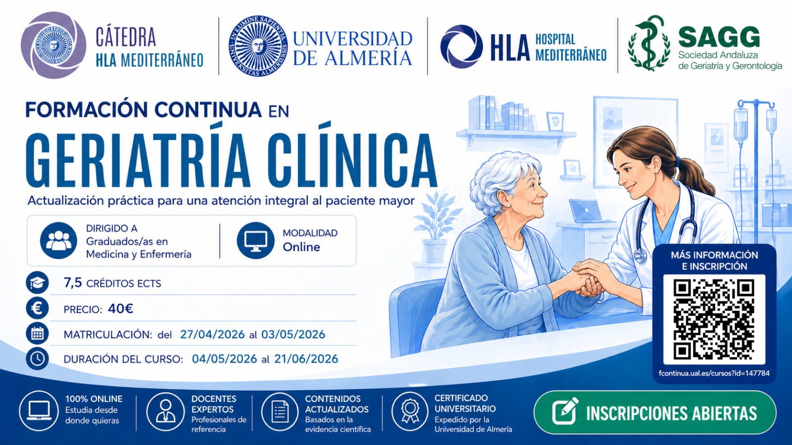 Actualiza tus conocimientos en Geriatría Clínica y mejora la atención al paciente mayor con una formación práctica, online y acreditada, avalada por la Sociedad Andaluza de Geriatría y Gerontología (SAGG)....